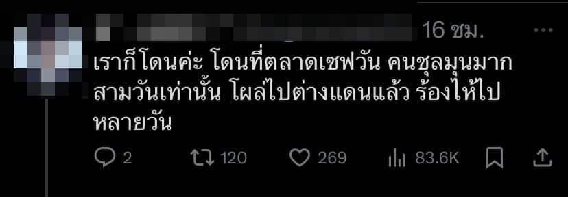 เบื้องต้นเราได้ทำการแจ้งความและขอดูกล้องวงจรปิดของห้างแล้ว แต่มองไม่เห็นหน้าคนร้ายค่ะ เลยอยากขอรบกวนถ้าใครถ่ายรูปหรือคลิปในงานไว้ อาจจะมีคนถ่ายติดเหตุการ์ณหรือหน้าคนร้ายค่ะ”