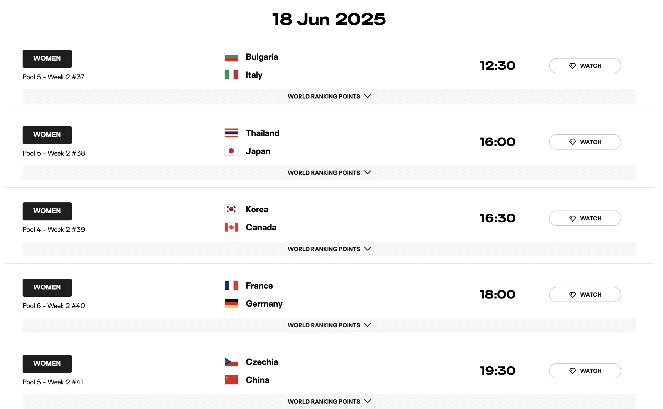 โปรแกรมการแข่งขัน วอลเลย์บอล VNL 2025 ประจำวันที่ 18 มิถุนายน 2568
