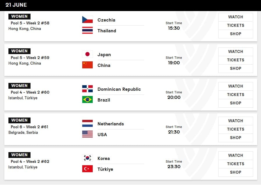 โปรแกรมการแข่งขัน วอลเลย์บอล VNL 2025 ประจำวันที่ 21 มิถุนายน 2568