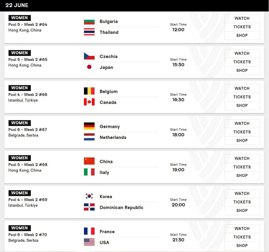 โปรแกรมการแข่งขัน วอลเลย์บอล VNL 2025 ประจำวันที่ 22 มิถุนายน 2568