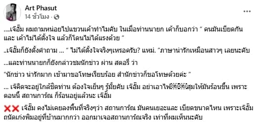 อาร์ต เตือน หมออั้ม โพสต์แขวนนักข่าว ทำไมค์เขกหัวนายกฯ ลั่น “อย่าสุมไฟ แค่นี้ก็ร้อนแล้ว”
