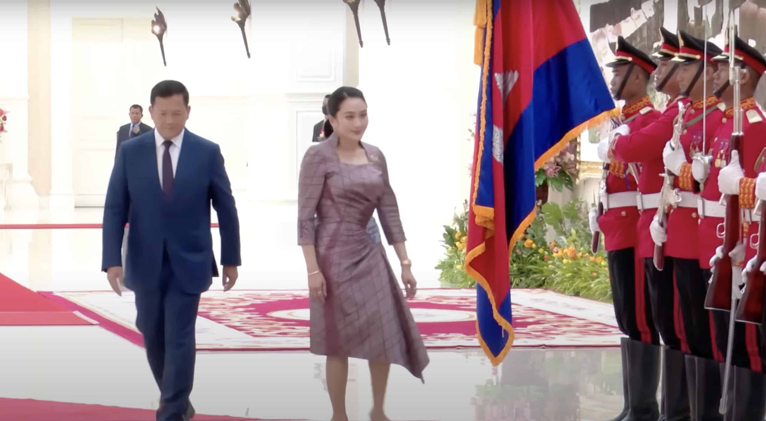 ในการรับรองอย่างเป็นทางการนั้น สมเด็จมหาบวรธิบดี ฮุน มาเนต นายกรัฐมนตรีกัมพูชา พร้อมภริยา ได้ให้การต้อนรับนายกรัฐมนตรีไทยและสามี ณ สถานที่จัดงาน โดยมีการเดินตรวจแถวต้อนรับภายในอาคาร ซึ่งปกติแล้วการตรวจแถวนอกอาคารไม่ค่อยเกิดขึ้นแล้วในปัจจุบัน