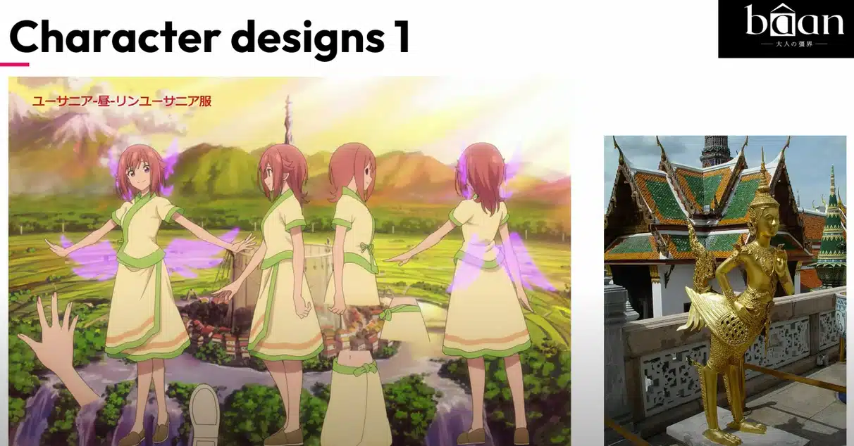 สตูดิโอเดซี่ (Studio Daisy) จะเป็นผู้อยู่เบื้องหลังในการทำอนิเมชั่นของการ์ตูนเรื่องนี้ โดย ยูชิมิทซึ โอฮาชิ ที่ผลงานจากเรื่อง CODE GEASS Rozé of the Recapture เป็นผู้กำกับ และ เควิน เพนกิน ที่มีผลงานจาก สืบคดีปริศนา หมอยาตำรับโคมแดง และ Made in Abyss เป็นผู้ประพันธ์เพลง ซึ่งจากผลงานที่แง้มออกมา เพลงจะมีการใช้ขลุ่ย ซึ่งได้รับแรงบันดาลใจจากดนตรีไทย
