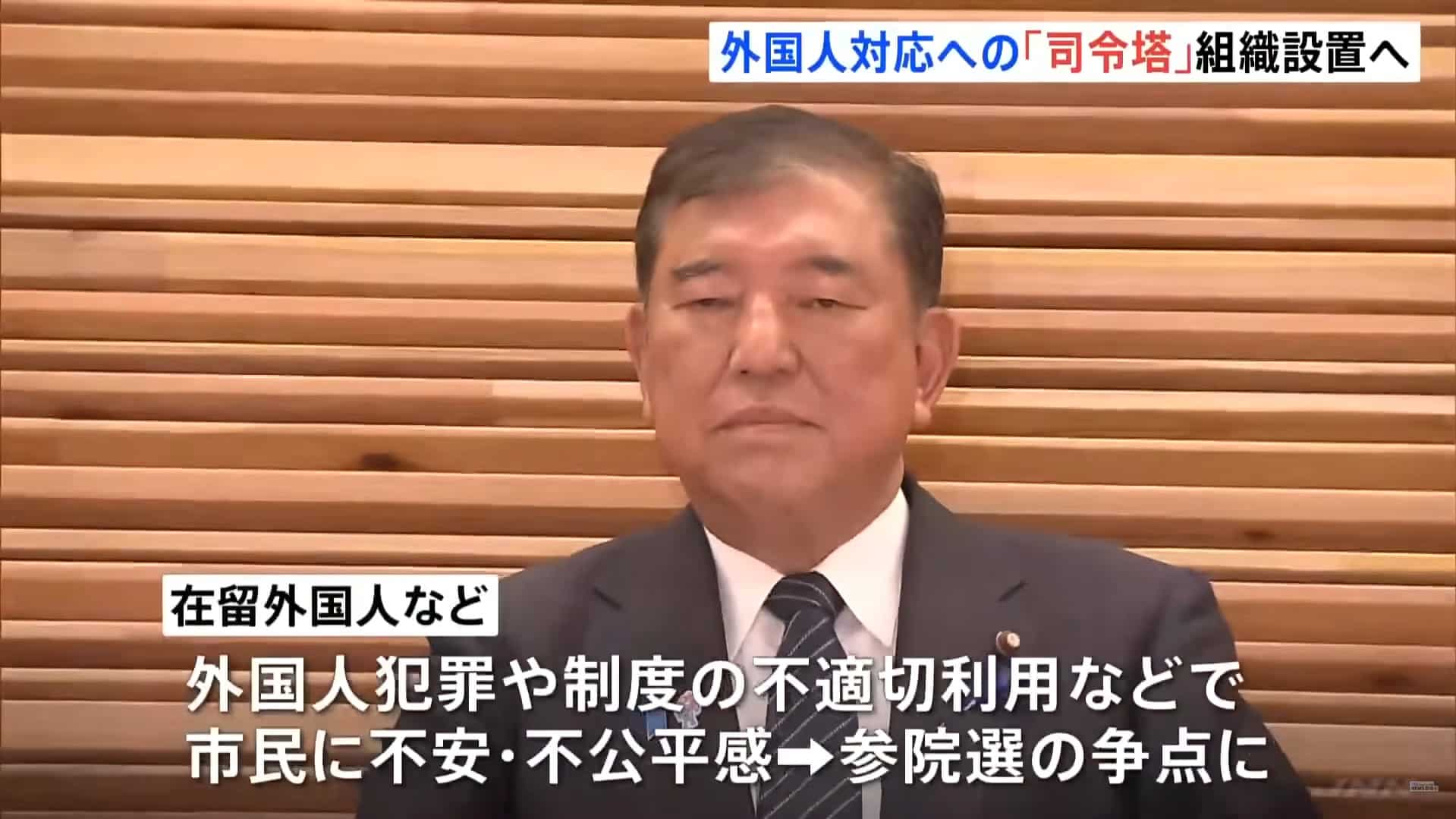 ชิเงรุ อิชิบะ นายกรัฐมนตรีญี่ปุ่น ประกาศกลางที่ประชุมคณะรัฐมนตรี ตั้งหน่วยงานคุมเข้มชาวต่างชาติ เพื่อจัดการปัญหาที่เกี่ยวกับชาวต่างชาติอย่างเบ็ดเสร็จ