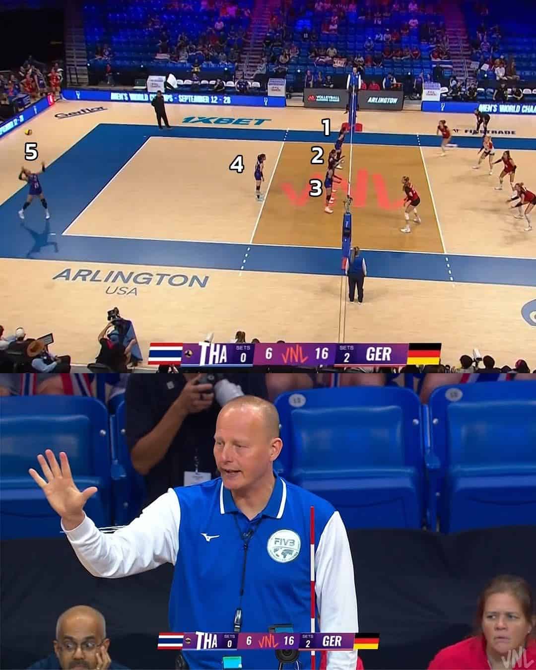 ทำผู้ชมอึ้งกันทั้งโลก เมื่อ วอลเลย์บอลหญิงไทย ทำให้ผู้ตัดสินต้องเป่าหยุดเกมชั่วคราว เพราะลงสนามเพียงแค่ 5 คน ระหว่างเกมที่แพ้ เยอรมนี ในศึก VNL 2025