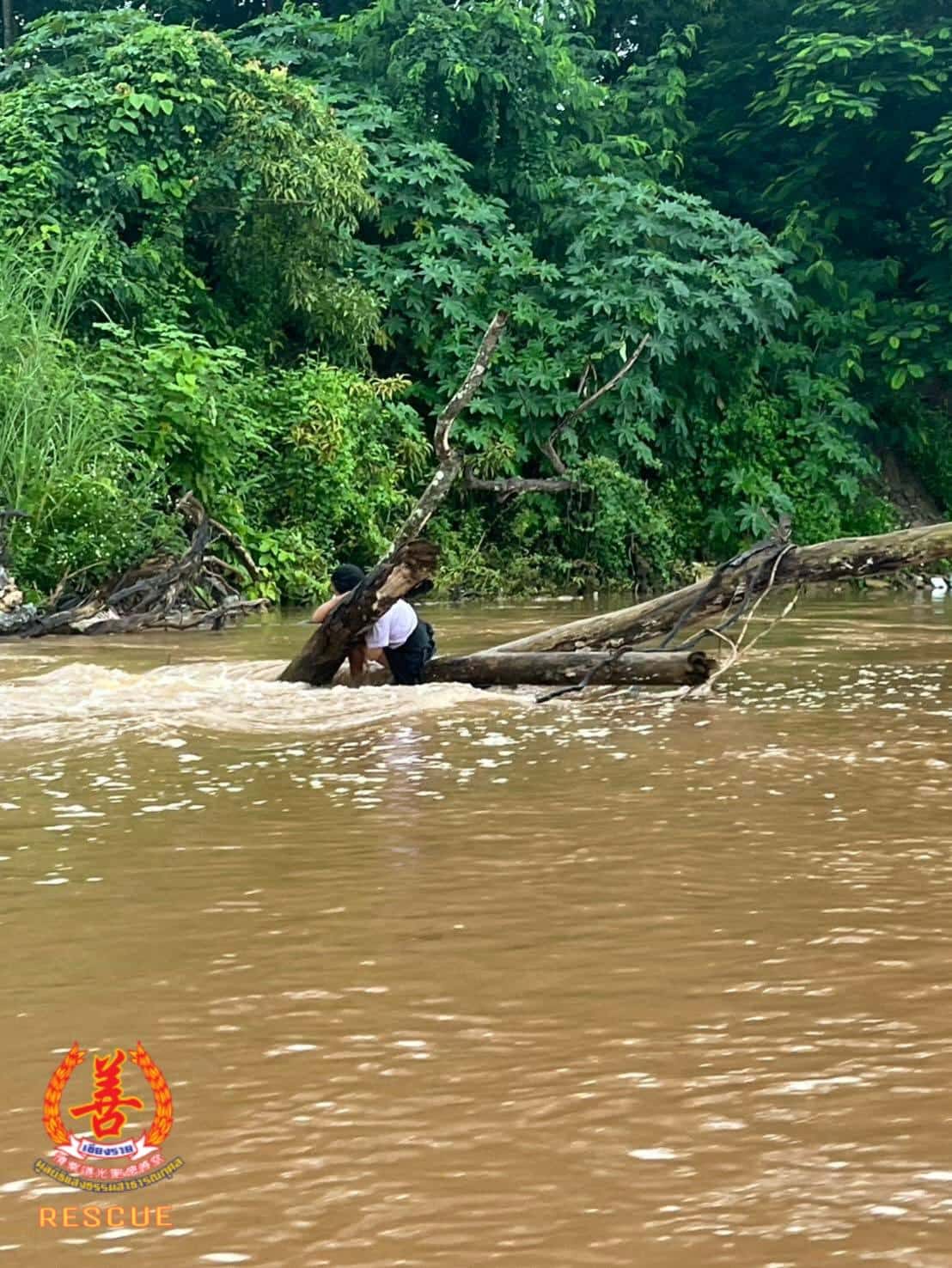 มูลนิธิแสงธรรมสาธารณกุศลเชียงราย จัดรถแสงธรรม704 ทีมกู้ภัยทางน้ำ “นทีแสงธรรม” พร้อมเรือหางยาวของเชิดชัย ท่าเรือ CR.เข้าช่วยเหลือขึ้นมาจากน้ำได้อย่างปลอดภัย ทำการปฐมพยาบาลเบื้องต้นรถแสงธรรม704นำส่งโรงพยาบาลเชียงรายประชานุเคราะห์