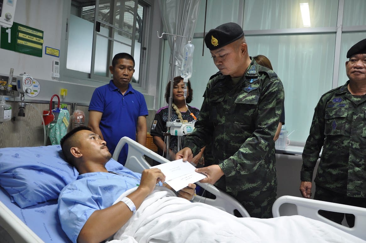 แม่ทัพภาคที่ 2 ได้มอบกระเช้าผลไม้และเงินบำรุงขวัญ พร้อมกล่าวแสดงความห่วงใยจากผู้บัญชาการทหารบกยังกำลังพลที่ได้รับบาดเจ็บและครอบครัว พร้อมชื่นชมในความกล้าหาญ ทุ่มเทและเสียสละ ทั้งจะให้ความช่วยเหลืออำนวยความสะดวก และดูแลสิทธิประโยชน์ของกำลังพลในทุกด้านอย่างดีที่สุด