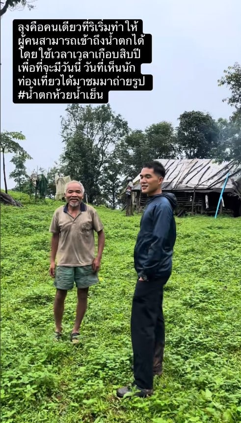 ในคลิปวิดีโอระบุว่า “ลุงคือคนเดียวที่ริเริ่มทำให้ผู้คนสามารถเข้าถึงน้ำตกได้ โดยใช้เวลาเกือบ 10 ปี เพื่อที่จะมีวันนี้ วันที่เห็นนักท่องเที่ยวได้มาชม มาถ่ายรูป” ผู้โพสต์ได้เดินเข้าไปพูดคุยกับคุณลุง ผู้ซึ่งเป็นแรงบันดาลใจให้หลายคนได้เห็นความงดงามของน้ำตกแห่งนี้