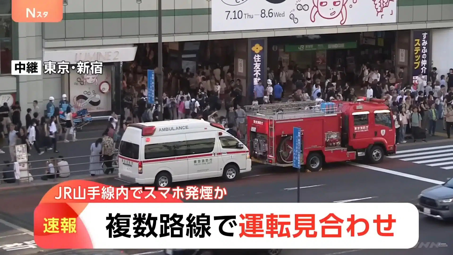 เหตุการณ์นี้เกิดขึ้นเมื่อวันอาทิตย์ที่ 20 กรกฎาคมที่ผ่านมา เวลาประมาณ 16:10 น. บนขบวนรถไฟสายยามาโนเตะ ที่กำลังวิ่งระหว่างสถานีชินโอคุโบะและชินจูกุ ผู้โดยสารสังเกตเห็นควันสีขาวลอยขึ้นจากกระเป๋าของผู้หญิงวัย 30 กว่าคนหนึ่ง ที่กำลังชาร์จสมาร์ทโฟนอยู่ เมื่อเธอดึงโทรศัพท์ออก พาวเวอร์แบงก์ก็เกิดไฟลุกไหม้ขึ้นมาเอง