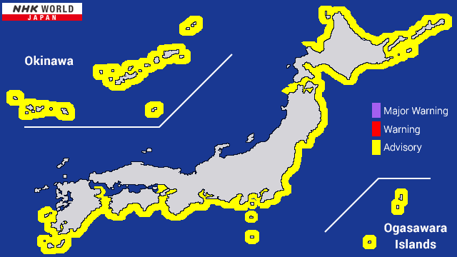 ก่อนหน้านี้ สำนักงานอุตุนิยมวิทยาญี่ปุ่นได้ปรับลดระดับจาก คำเตือนสึนามิ (Tsunami Warning) เป็น คำแนะนำสึนามิ (Tsunami Advisory) อย่างต่อเนื่อง ตั้งแต่ฮอกไกโดไปจนถึงจังหวัดวากายามะ เพื่อให้ประชาชนระมัดระวัง