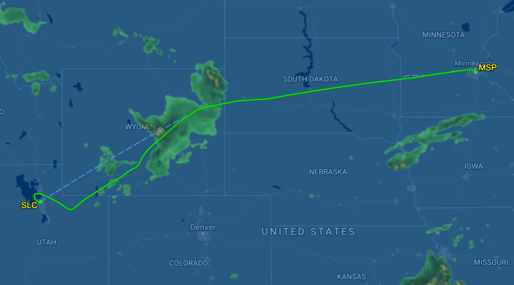 โดยเครื่องตกหลุมอากาศ และทำให้ต้องเปลี่ยนไปลงจอดที่เมืองมินนีแอโพลิส รัฐมินนิโซตา โดยเครื่องลงจอดอย่างปลอดภัยในเวลา 19.45 น. ตามเวลาท้องถิ่น เบื้องต้นเจ้าหน้าที่ได้นำผู้ได้รับบาดเจ็บ 25 รายส่งโรงพยาบาล เพื่อดูอาการและรับการรักษาต่อไป