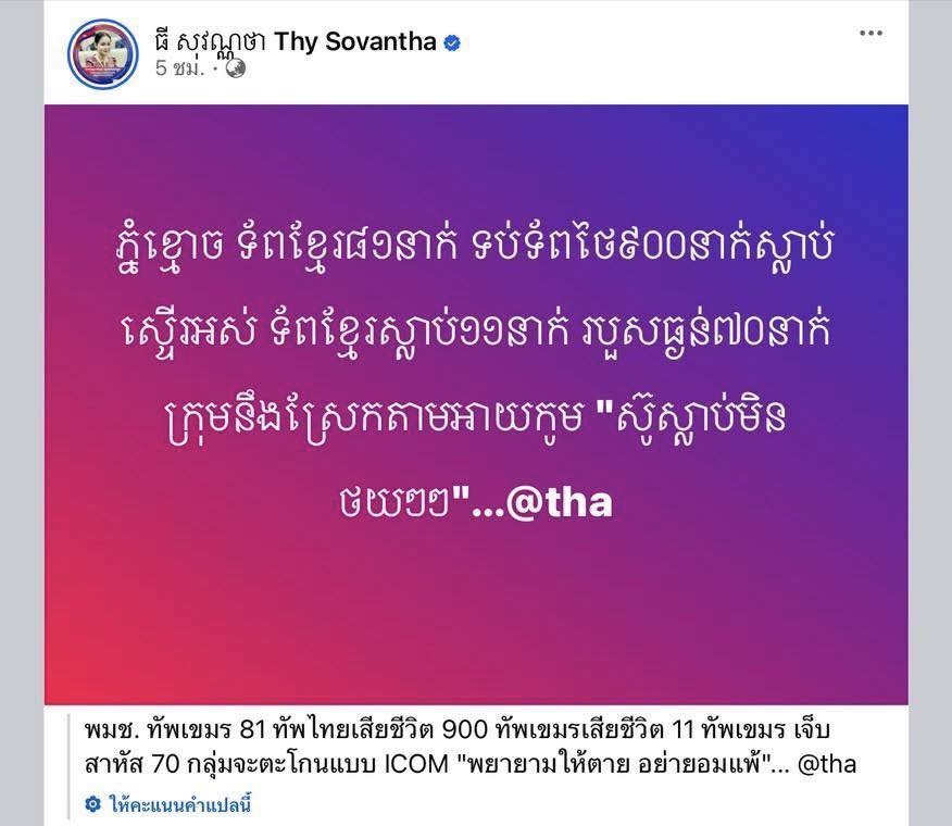 นอกจากมันจะปล่อยข่าว เฟคนิวส์ โจมตีไทยแล้ว มันยังไปแอบอ้างขอรับบริจาคเงินจากคนเขมรอ้างจะเอาไปช่วยทหารช่วยคนเจ็บ บลาๆ