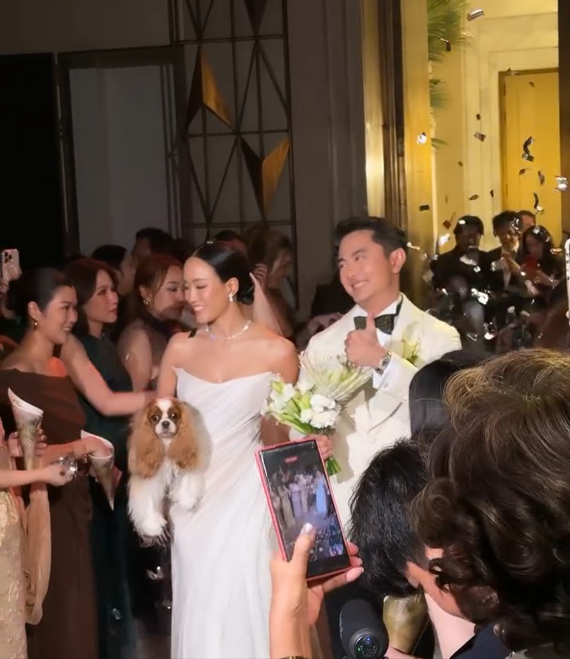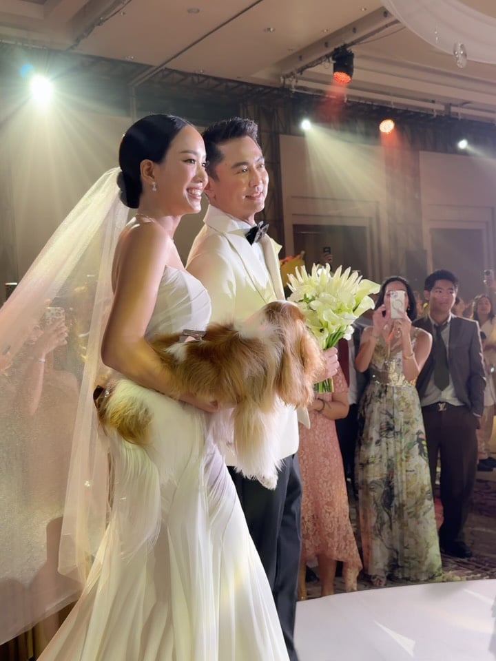 สำหรับงานฉลองมงคลสมรสในช่วงค่ำ วินและพิมได้ควงคู่กันมาพร้อมกับ “น้องคาปริโอ” สุนัขสุดรักของทั้งสองคน ท่ามกลางบรรยากาศที่เต็มไปด้วยความอบอุ่นของครอบครัว เพื่อนสนิท และพี่น้องในวงการบันเทิงที่มาร่วมแสดงความยินดีอย่างคับคั่ง