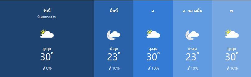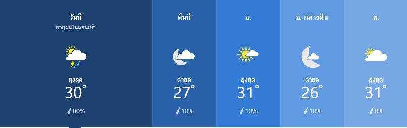 มีเมฆมากเป็นบางส่วน สูง 30เซลเซียส ความเร็วลม ตะวันออก ตะวันออกเฉียงเหนือ ที่ 15 ถึง 25 กิโลเมตรต่อชั่วโมง