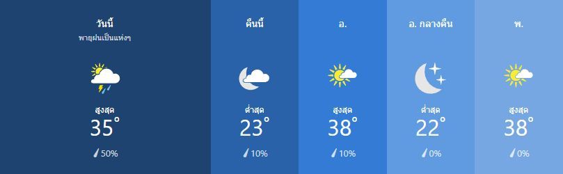 เกิดพายุฟ้าคะนองกระจาย สูง 35เซลเซียส ความเร็วลม ใต้ ตะวันตกเฉียงใต้ ที่ 10 ถึง 15 กิโลเมตรต่อชั่วโมง โอกาสที่ฝนจะตก 50%
