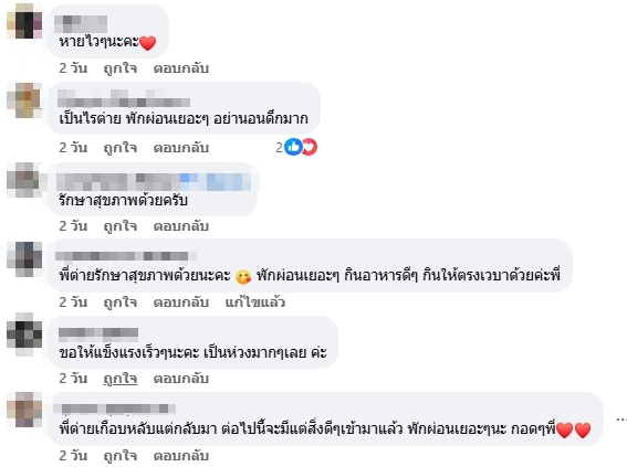 “เกือบหลับแต่กลับมาได้!! ขอบคุณนะที่รักถ้าไม่ได้ที่รักส่งโรงพยาบาลคืนนั้นคงไม่ได้เจอกันแล้ว ขอบพระคุณทุกข้อความทุกกำลังใจจากทุกคนได้อ่านหมดแต่ไม่มีแรงตอบจริง ๆ ขอบพระคุณทีมแพทย์พยาบาลโรงพยาบาลเปาโลโชคชัย 4 เจ้าหน้าที่ทุกท่านที่ดูแลดีมาก ขอบพระคุณสื่อและเพื่อน ๆ พี่น้องในวงการ กัลยาณมิตรทุกท่านทีมงานและ fc ที่ส่งกำลังใจมา ขอบคุณจากใจจริง ๆ ค่ะ”