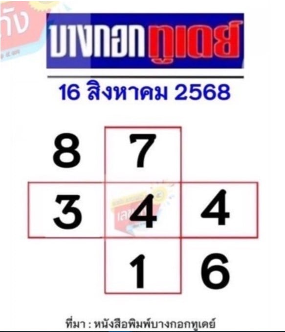 - เลขเด็ด บางกอกทูเดย์ : 1, 3, 4 (เด่น), 6, 7, 8