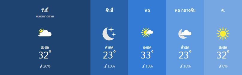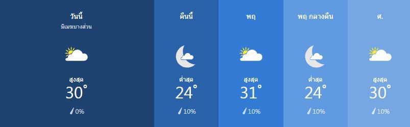 มีเมฆมากเป็นบางส่วน สูง 30เซลเซียส ความเร็วลม ตะวันออก ตะวันออกเฉียงเหนือ ที่ 15 ถึง 25 กิโลเมตรต่อชั่วโมง
