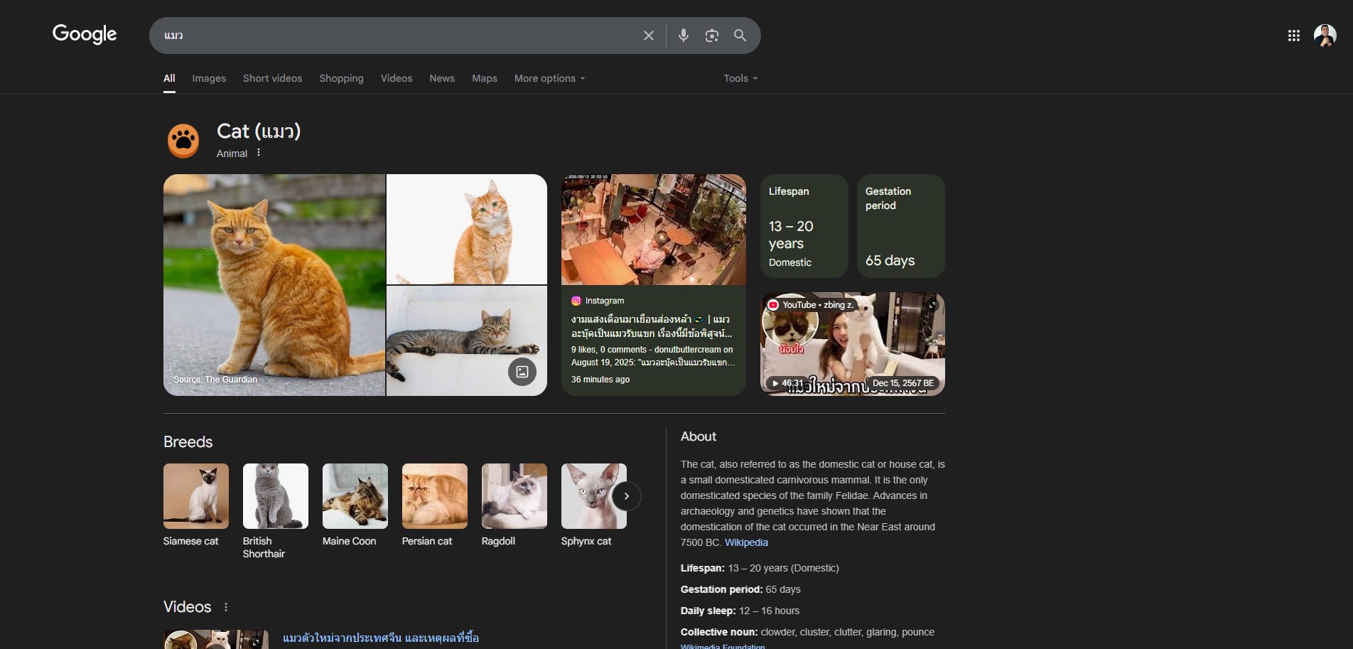 - พิมพ์ในช่องค้นหาว่า “แมว”