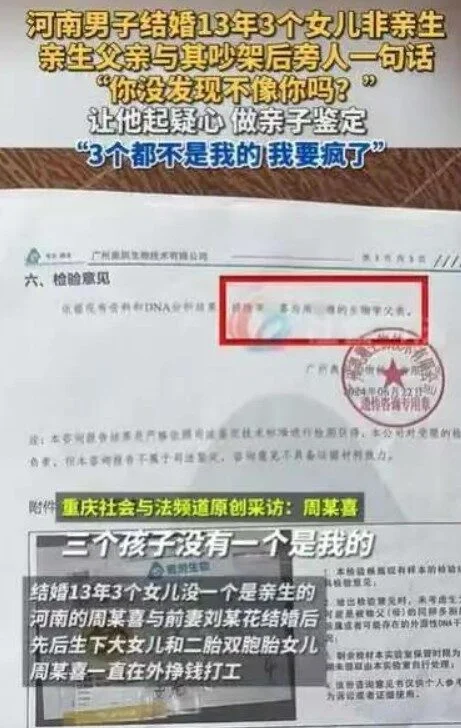 แน่นอนว่าคำถามนั้นทำให้คุณโจวรู้สึกไม่สบายใจ แต่หลังจากนั้นเขาก็เริ่มสังเกตลูกๆ อย่างใกล้ชิด และพบว่าลูกๆ มีหน้าตาคล้ายอาของเขาจริงๆ ด้วยความสงสัยที่ไม่อาจทนเก็บไว้ได้ คุณโจวจึงแอบพาลูกๆ ไปตรวจ DNA และผลก็ออกมาว่าลูกสาวทั้ง 3 คน ไม่ใช่ลูกทางสายเลือดของเขา