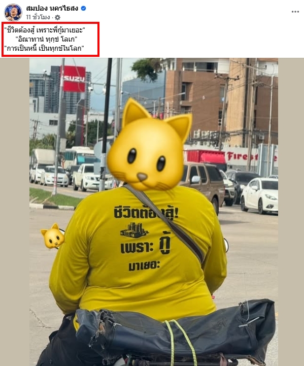 จากนั้นก็ได้มีการพิมพ์ข้อมูลเพิ่มเติมในกล่องคอมเมนต์ว่า “ยืมเด้อครับ บ่ได่ไปเอาซือๆ ยืม 10 กว่าๆ ใช้คืนไปแล้ว 5 กว่า ๆ ปีนี้ปีหน้าก็น่าจะใช้หมดครับ” กระทั่งต่อมาอีกไม่ถึงชั่วโมง สมปอง นครไธสง ก็โพสต์ข้อความเพิ่มเติมอีกครั้งระบุว่า “ยืมนะครับยืม คืนไปแล้วเกือบครึ่ง”