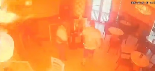 จากภาพวงจรปิดของร้าน Las Postas ในเมือง Los Palacios y Villafranca ประเทศสเปน แสดงให้เห็นชายคนหนึ่งกำลังเทน้ำมันเบนซินลงบนเคาน์เตอร์ ก่อนจะจุดไฟ ทำให้เปลวไฟลุกท่วมอย่างรวดเร็วท่ามกลางความตกใจของผู้คนที่อยู่ในร้าน