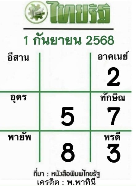 - เลขเด็ด ไทยรัฐ : 2-3-5-7-8