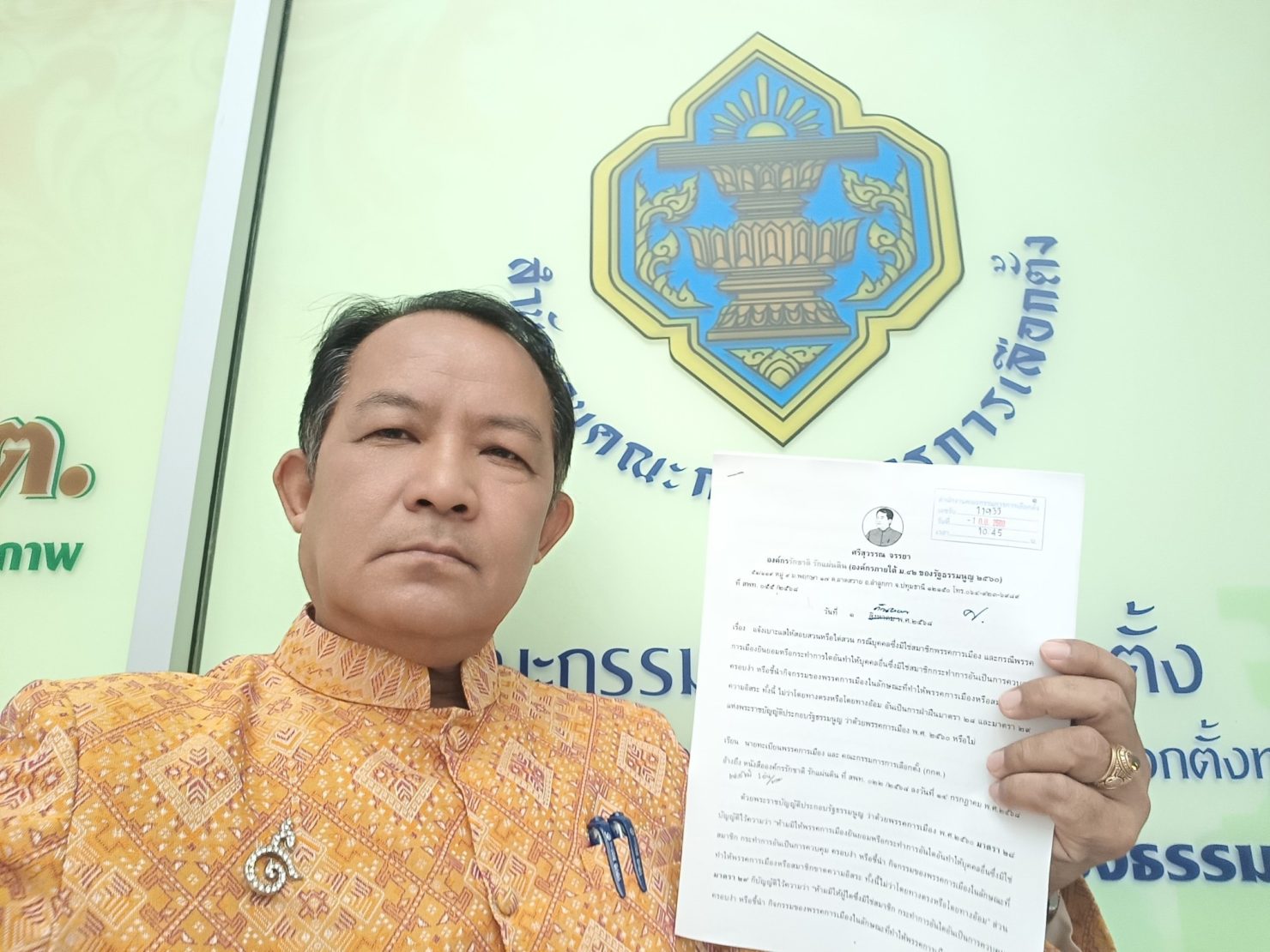 นายศรีสุวรรณ จรรยา ผู้นำองค์กรรักชาติ รักแผ่นดิน ได้เดินทางมายื่นคำร้องต่อนายทะเบียนพรรคการเมืองและ กกต. เมื่อช่วงเวลาประมาณ 10.00 น. เพื่อขอให้ไต่สวนสอบสวนกรณีนายธนาธร จึงรุ่งเรืองกิจ ประธานคณะก้าวหน้า ออกมายอมรับว่าได้เจรจาพูดคุยกันกับนายทักษิณ ชินวัตร อดีตนายกรัฐมนตรี เกี่ยวกับการจัดตั้งรัฐบาลระหว่างพรรคเพื่อไทยกับพรรคประชาชนนั้น เข้าข่ายเป็นการฝ่าฝืนมาตรา 28-29 แห่ง พ.ร.ป.ว่าด้วยพรรคการเมือง 2560 หรือไม่