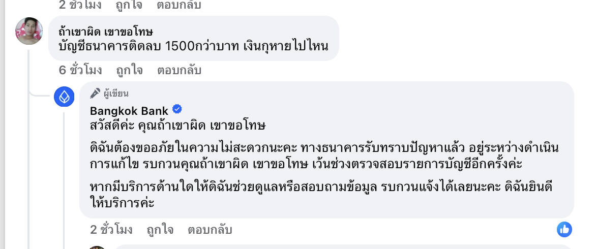 ล่าสุด แม้จะยังไม่มีการแจ้งประกาศปัญหาอย่างเป็นทางการออกมาจากธนาคารกรุงเทพ แต่ทางเพจได้เข้ามาตอบคอมเมนต์ว่า