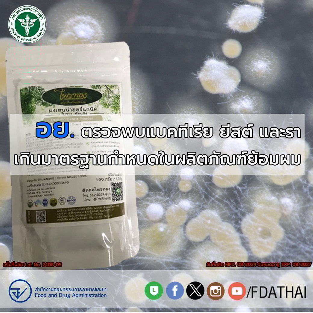 - อย. เตือน ยาย้อมผมยี่ห้อดัง เจอเชื้อรา-แบคทีเรีย เกินมาตรฐาน 500 เท่า