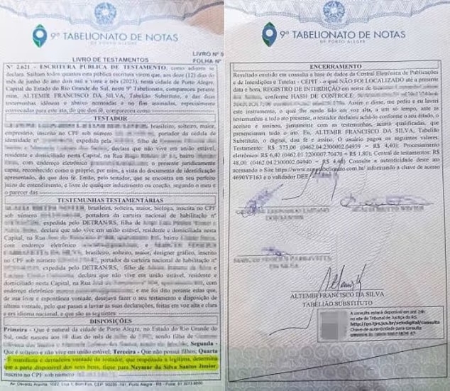 พินัยกรรมดังกล่าวได้รับการลงนามและรับรองอย่างเป็นทางการเมื่อวันที่ 12 มิถุนายน โดยมีพยานสองคน อย่างไรก็ตาม เรื่องนี้ยังคงต้องรอการอนุมัติจากศาลบราซิลหากเนย์มาร์จะได้รับสิทธิ์เป็นทายาทเพียงคนเดียว