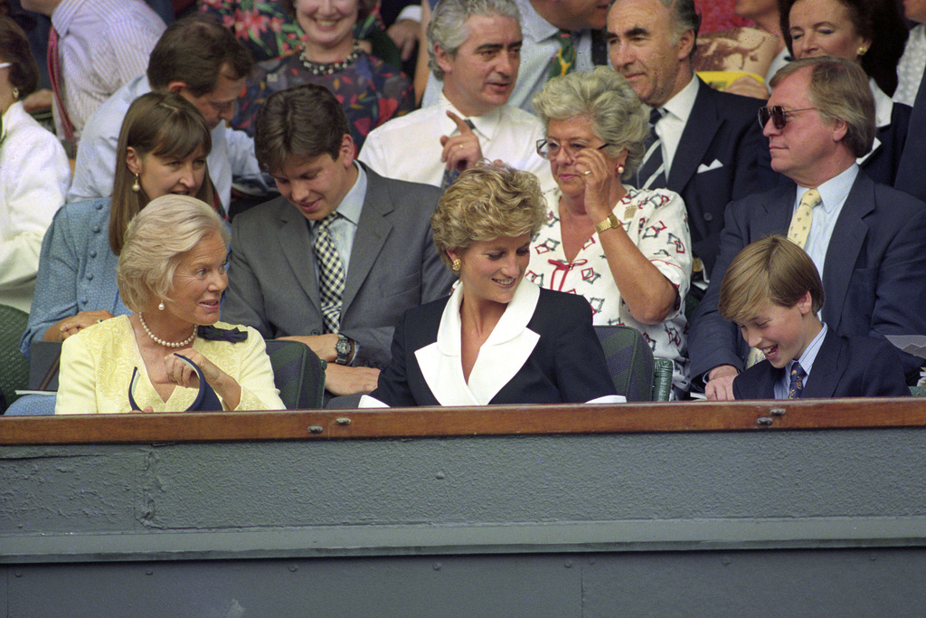 - From left, Katherine, Duchess of Kent, Diana, Princess of Wales, and Prince William chat in the Royal Box during the Women’s Singles Final at Wimbledon, London, on July 2, 1994 (Neil Munns/PA via AP)