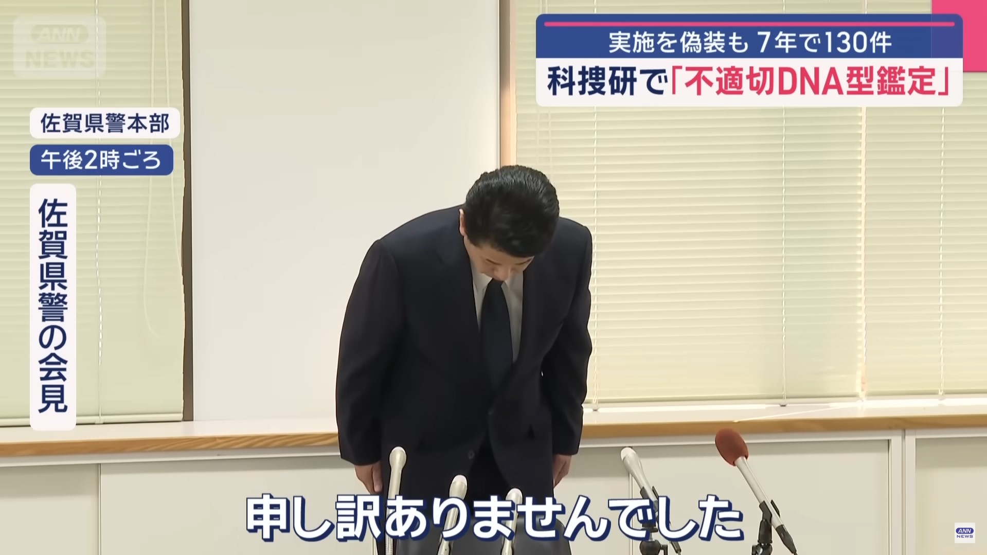เกิดเหตุการณ์ที่สร้างความตกตะลึงไปทั่วประเทศญี่ปุ่น เมื่อมีรายงานว่า ข้าราชการชายวัย 40 ปีที่ทำงานในสถาบันวิจัยนิติวิทยาศาสตร์ จังหวัดซะกะ ถูกให้ออกจากราชการและถูกตั้งข้อหาทำลายหลักฐาน เนื่องจากได้ปลอมแปลงผลการตรวจ DNA รวม 130 ครั้ง ในช่วงระยะเวลา 7 ปี