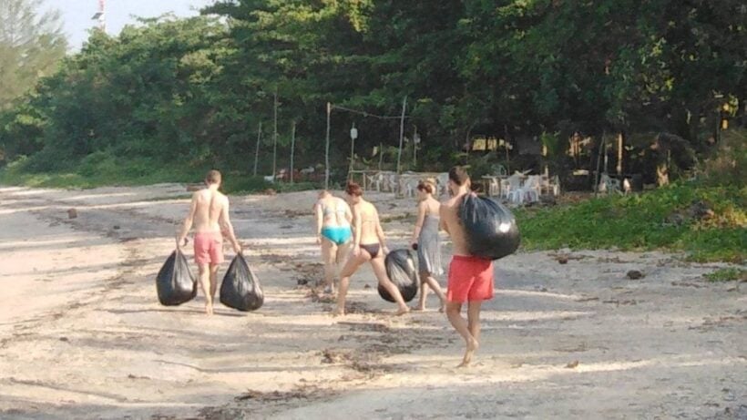 น้ำใจงาม 5 ชาวต่างชาติ เดินเก็บขยะ หน้าหาดแหลมป่อง กระบี่ หลังพบถูกทิ้งเกลื่อน