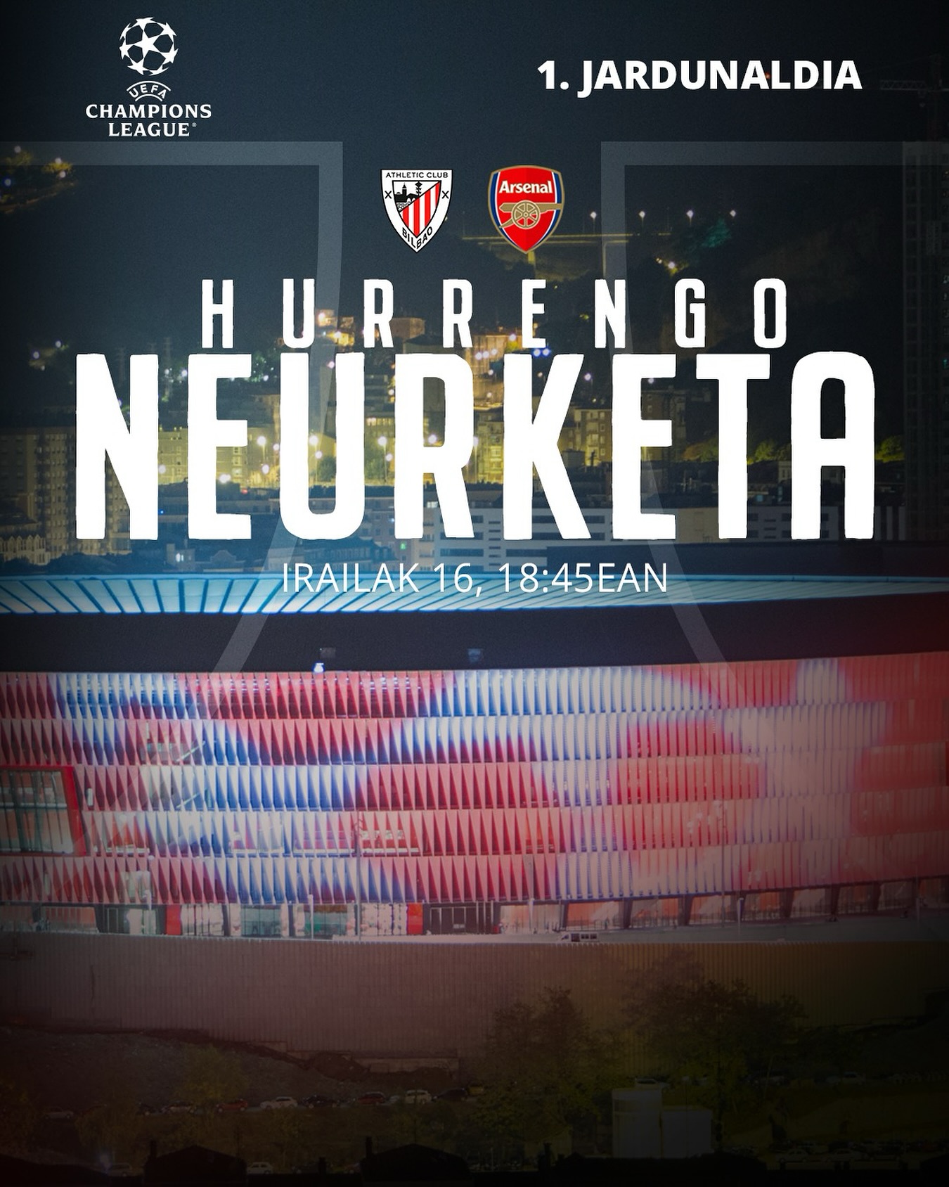 ดูบอลสด ยูฟ่า แชมเปี้ยนส์ ลีก แอธ.บิลเบา VS อาร์เซนอล ลิงก์ดูออนไลน์