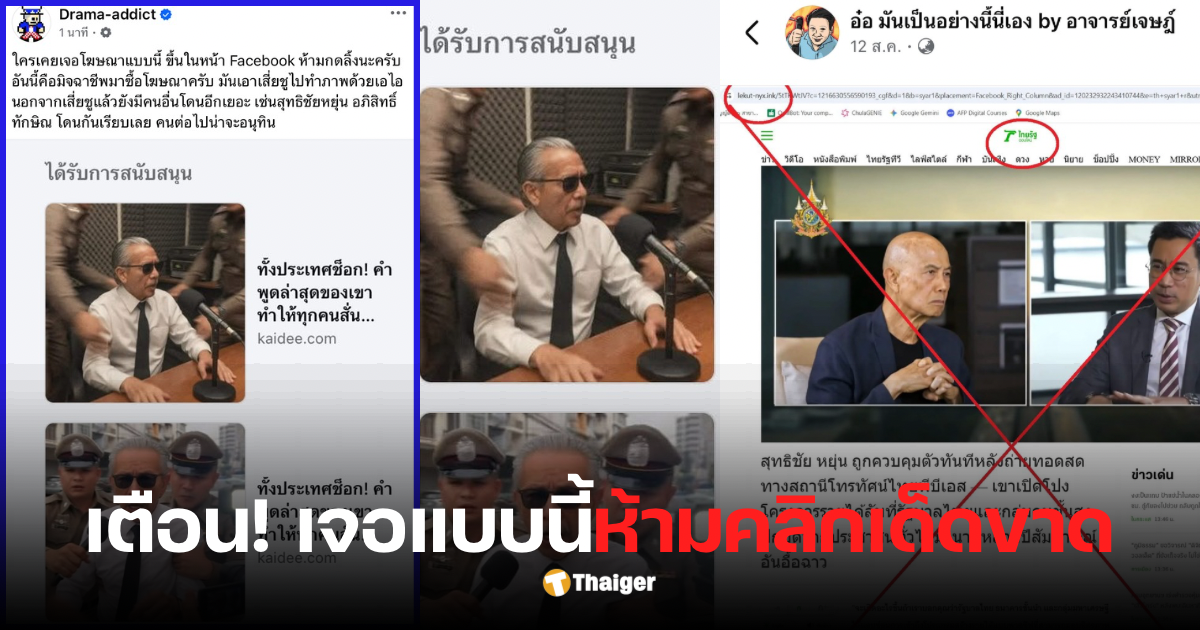 เพจ Drama-addict เตือนภัยมิจฉาชีพรูปแบบใหม่ใช้รูปชูวิทย์-สุทธิชัย หยุ่น ปัญหาระบาดหนัก ปั่นเอไอตัดต่อคนดังหวังสูบเหยื่ออีกจำนวนมาก