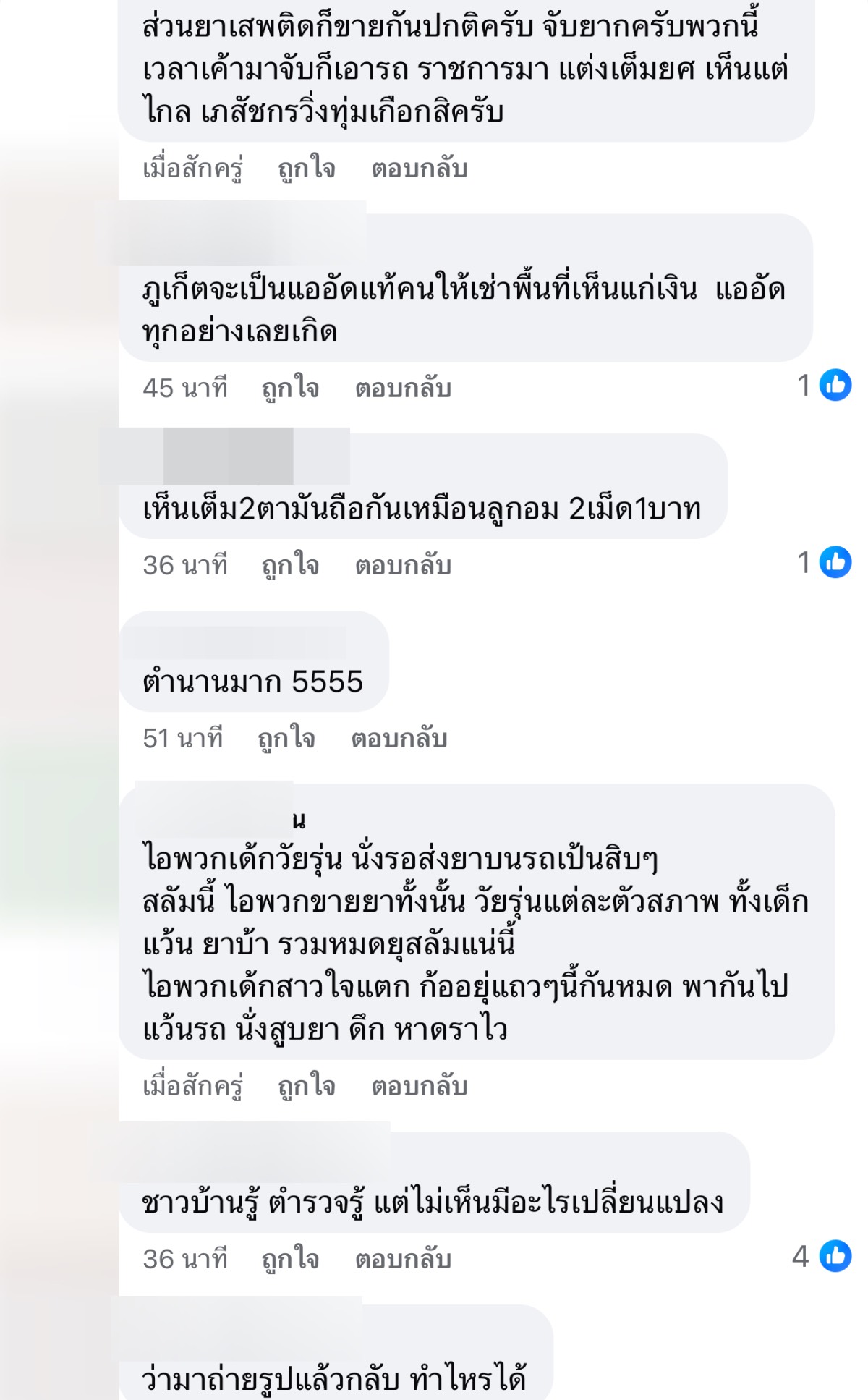 ”พวกเด็กวัยรุ่น นั่งรอส่งยาบนรถเป็นนสิบๆ สลัมนี้ พวกขายยาทั้งนั้น วัยรุ่นแต่ละตัวสภาพทั้งเด็กแว้น ยาบ้า รวมหมดยุสลัมแน่นี้“