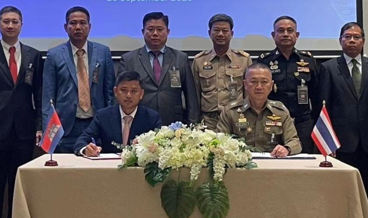 พล.ต.อ.ธัชชัย ปิตะนีละบุตร จเรตำรวจแห่งชาติ ในฐานะหัวหน้าศูนย์ PCT แถลงการประชุมกับ พล.ต.ท.เซียง ซาริด รอง ผบ.ตร.กัมพูชา เพื่อหารือแก้ปัญหาอาชญากรรมทางเทคโนโลยี สแกมเมอร์ ใช้เวลาประชุมนานกว่า 10 ชั่วโมงก่อนจะมีการลงนามร่วมกัน