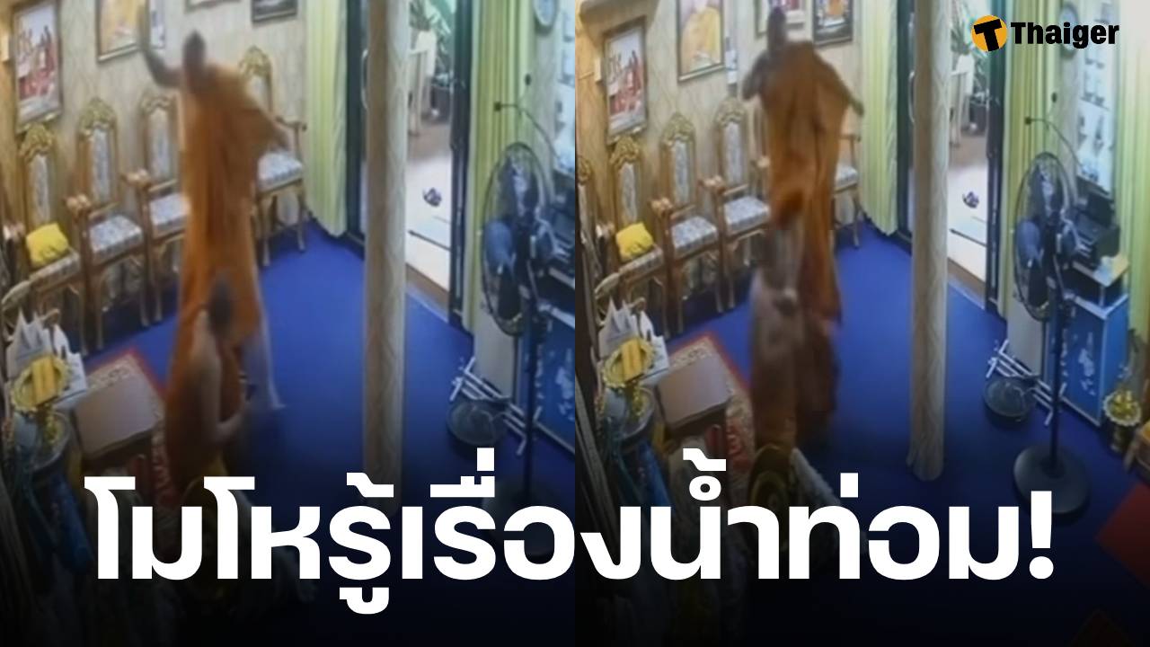 ก่อนเกิดเหตุ พระลูกชายก็เดินเข้าไปในกุฏิเจ้าอาวาสแล้วยกมือไหว้ พร้อมกับบอกกราบลา แต่ปรากฏว่า เจ้าอาวาสที่เดินออกมาจากห้องได้เข้าทำร้ายร่างกาย ใช้เท้าเตะจนพระลูกชายล้มลง แล้วยังเตะอีกหลายครั้ง ก่อนใช้มือตบศีรษะอย่างรุนแรง จนพระลูกชายล้มลงไปนอนกองบนพื้น