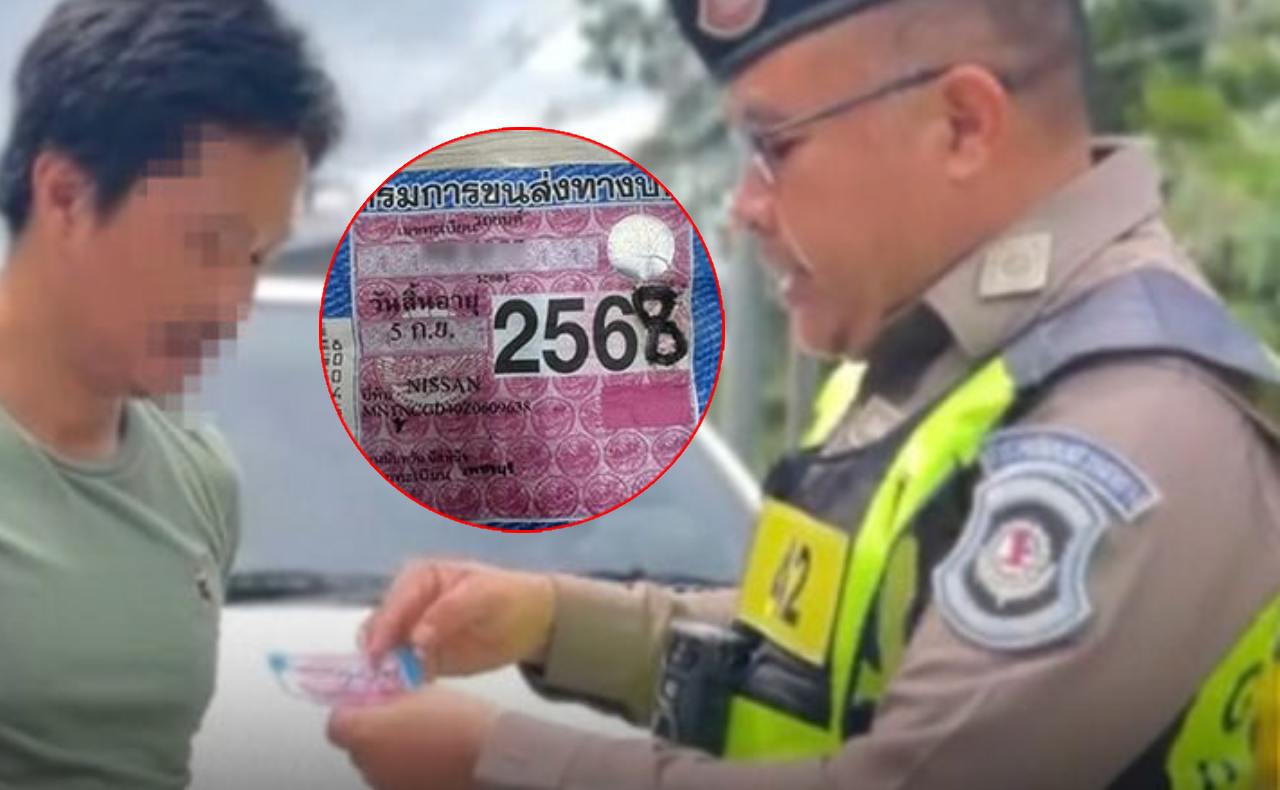 ไม่เนียนไปเรียนมาใหม่ ตำรวจรวบหนุ่มหัวใส ป้ายภาษีหมดอายุ ใช้ปากกาเขียนแก้ จากปี 67 เป็นปี 68 โดนข้อหาปลอมแปลงเอกสาร