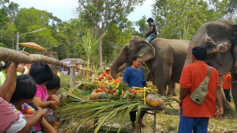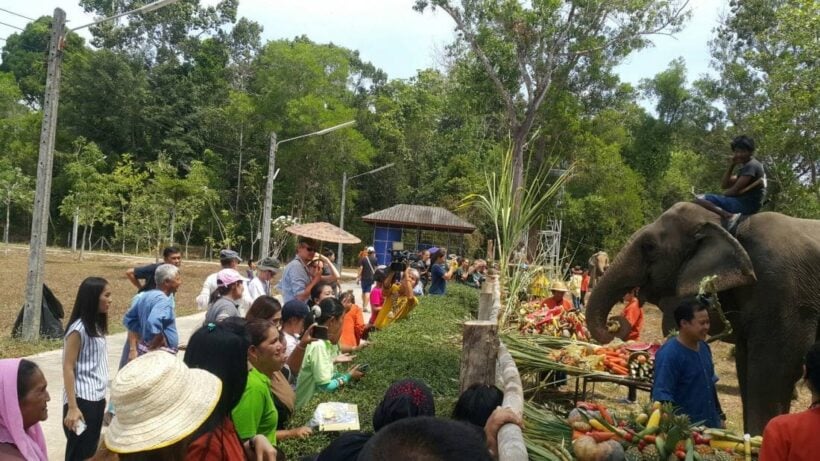 โรงพยาบาลช้างภาคใต้ จ.กระบี่ จัดทำบุญอุทิศส่วนกุศลให้ช้างที่เสียชีวิต เพื่อความสิริมงคลเนื่องในวัน ช้างไทย พร้อมโต๊ะจีนเลี้ยงช้าง