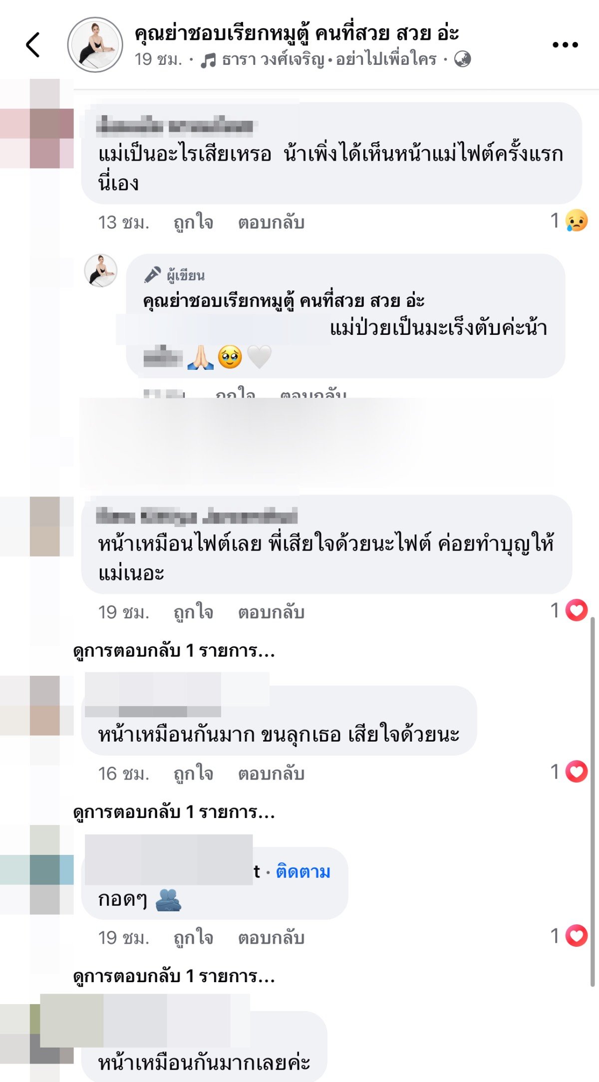 ต่อมามีการสอบถามสาเหตุการจากไป โดยเฟซบุ๊กของลูกสาวก็เข้ามาตอบข้อสงสัยนี้ว่า แม่ของเธอนั้นจากโลกนี้ไปด้วยสาเหตุของ”โรคมะเร็งที่ตับ“.