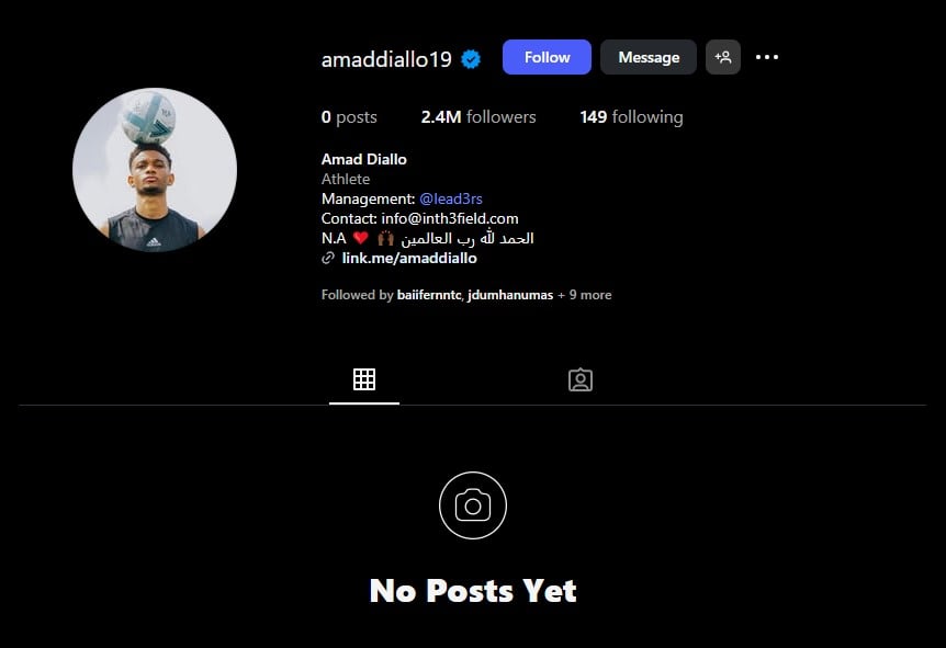 ทำเอาแฟนบอลงงกันเป็นแถบ เมื่อนักเตะอย่าง อาหมัด ดิยัลโล่ ปีกตัวจี๊ดของ แมนยู จู่ๆ ก็ลบโพสต์ทั้งหมดในอินสตาแกรมจนหมด