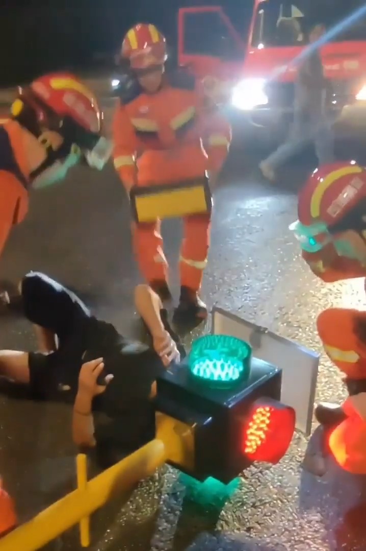 A Chinese man got his head stuck in a temporary traffic light after crashing his electric scooter. It took 40 minutes for the emergency services to free him.pic.twitter.com/l5uc49UJi7