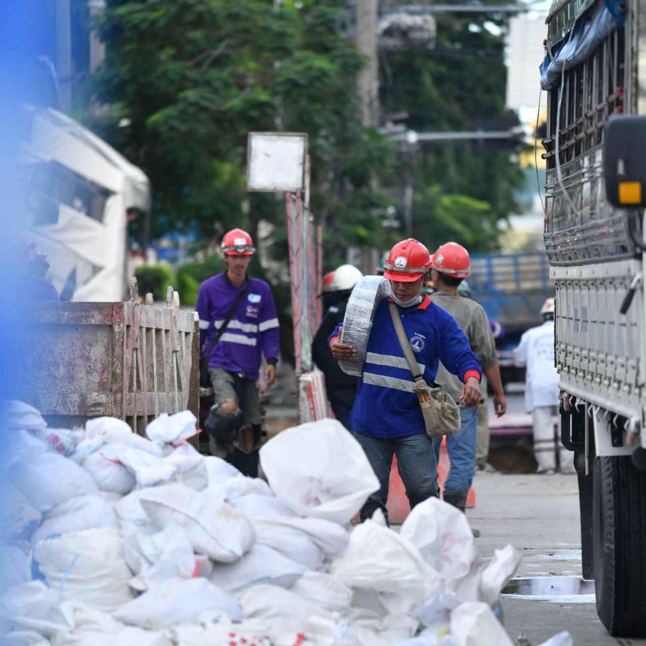 “ชัชชาติ” ทิ้งกระสอบทราย 50,000 ลูก อุดช่องว่างใต้ดิน เร่งแก้ปัญหาถนนทรุด