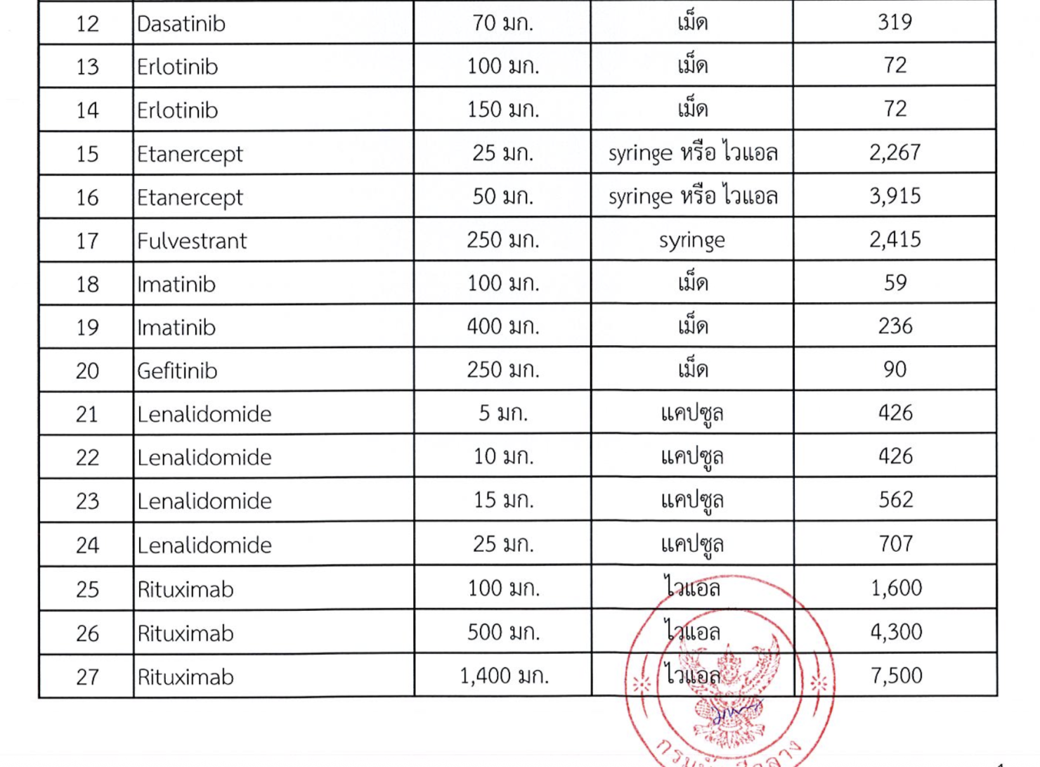 | 24 | Lenalidomide | 25 มก. | แคปซูล | 707 |