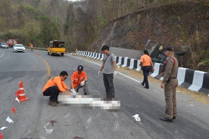 เทเลอร์บรรทุกน้ำ พุ่งชนแท่นปูนกั้นถนน ดับ 1 คาดคนขับหลับในหลุดโค้ง