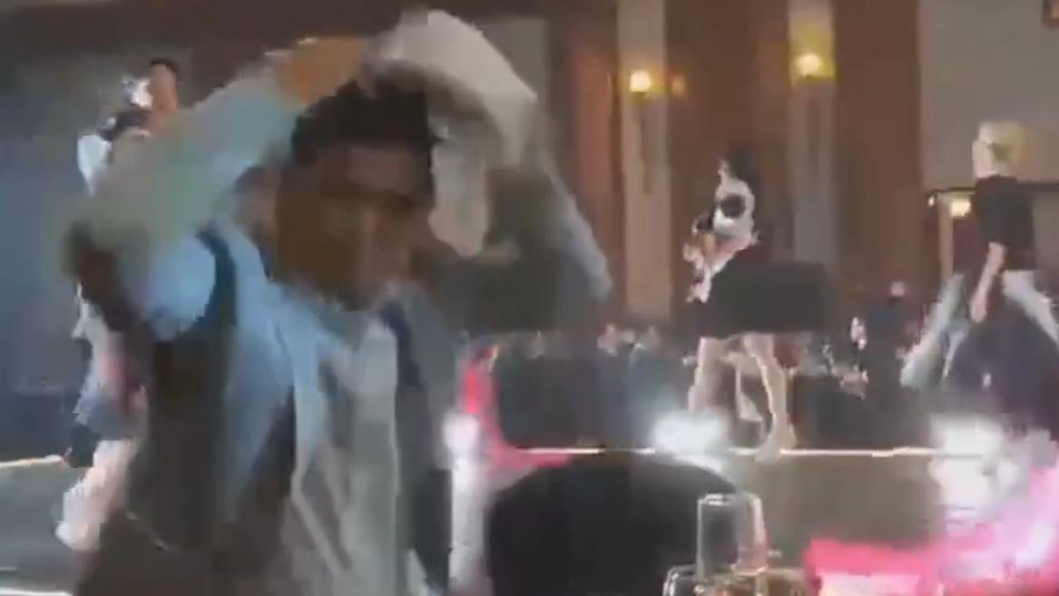 ขณะที่ภาพจากอีกมุมแสดงให้เห็นถึงตากล้องที่ต่างวิ่งหนีกันอย่างวุ่นวายและบางส่วนวิ่งเข้าไปหลบใต้โต๊ะ นอกจากนี้ยังได้เสียงของตกแตกอีกด้วย