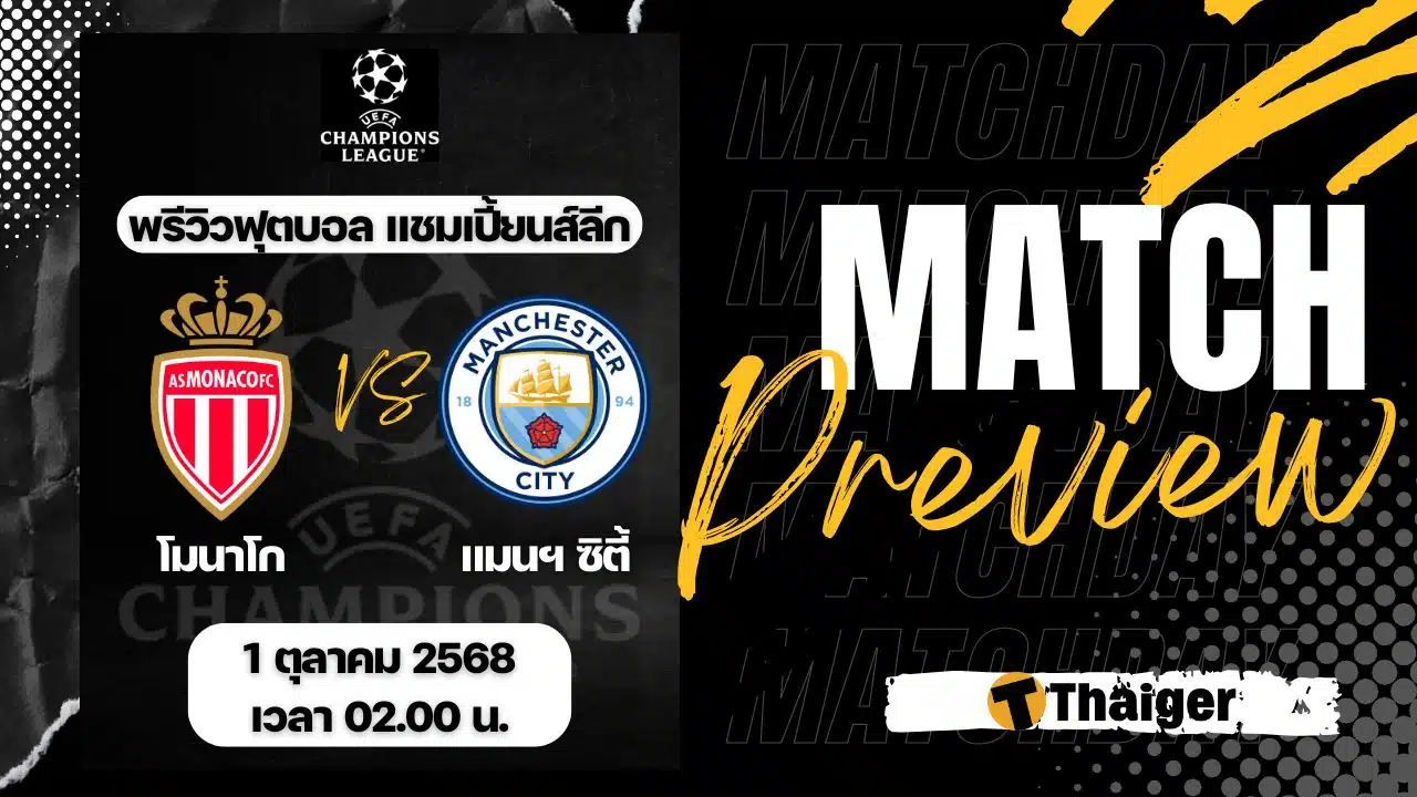 Thaiger ทายผลบอล โมนาโก 0-2 แมนซิตี้