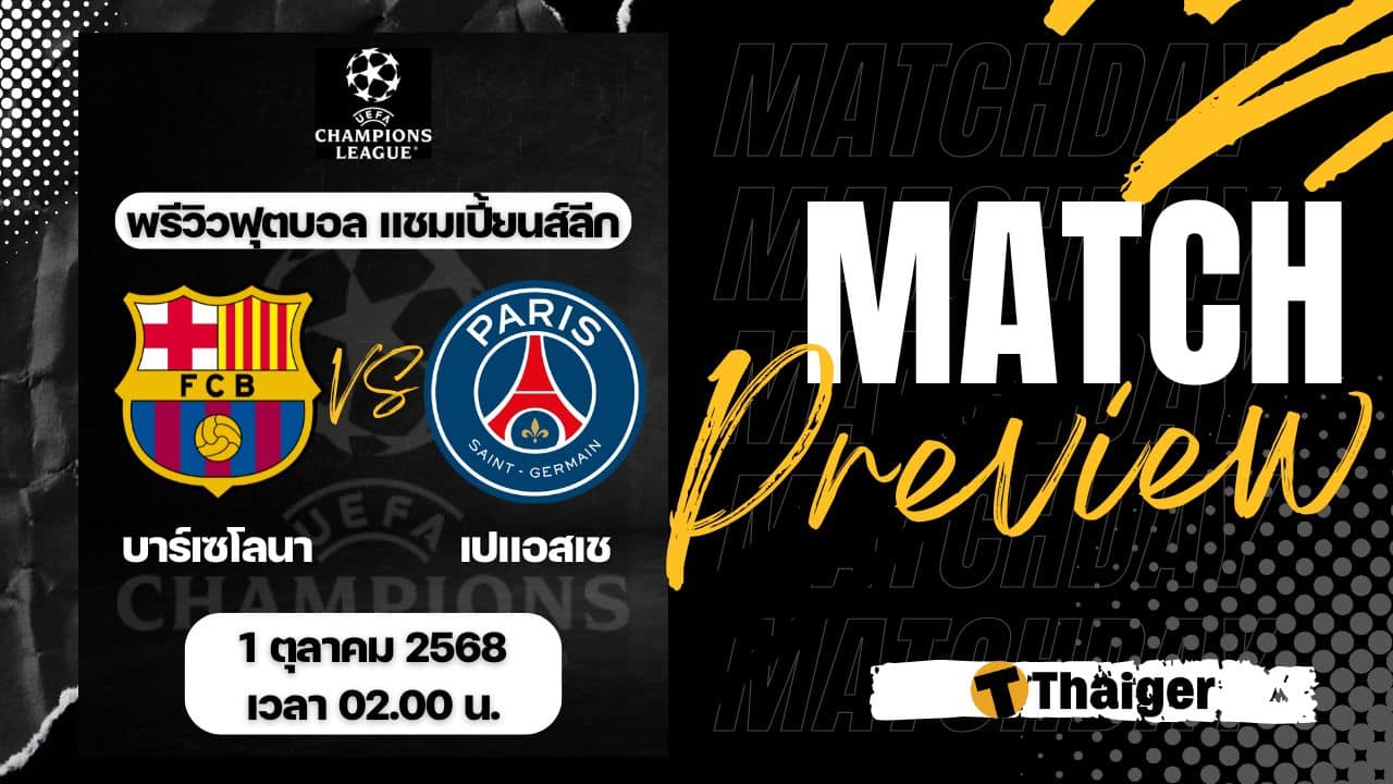 1 ตุลาคม 68 ดูบอลสด ฟุตบอล ยูฟ่า แชมเปี้ยนส์ ลีก รอบลีกเฟส นัดที่ 2 ระหว่าง บาร์เซโลนา พบ เปแอสเช ที่สนาม เอสตาดิ โอลิมปิก หลุยส์ คอมปานีส์ เวลา 02:00 น. ตามเวลาประเทศไทย พร้อมถ่ายทอดสด